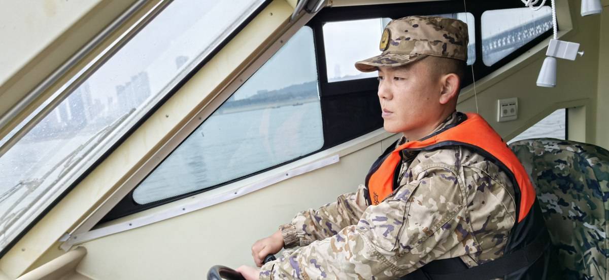 孟鑫驾驶巡逻艇。