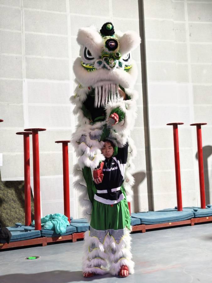 邱文博和同伴正在练习舞狮。(湖北日报全媒记者曹雯摄)
