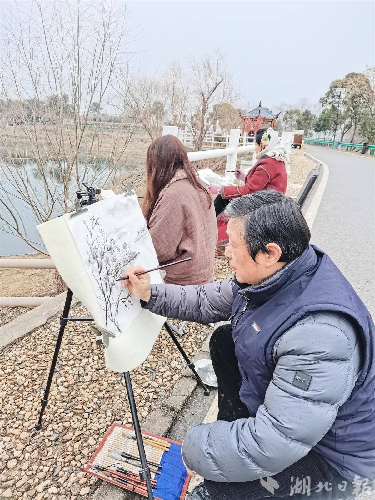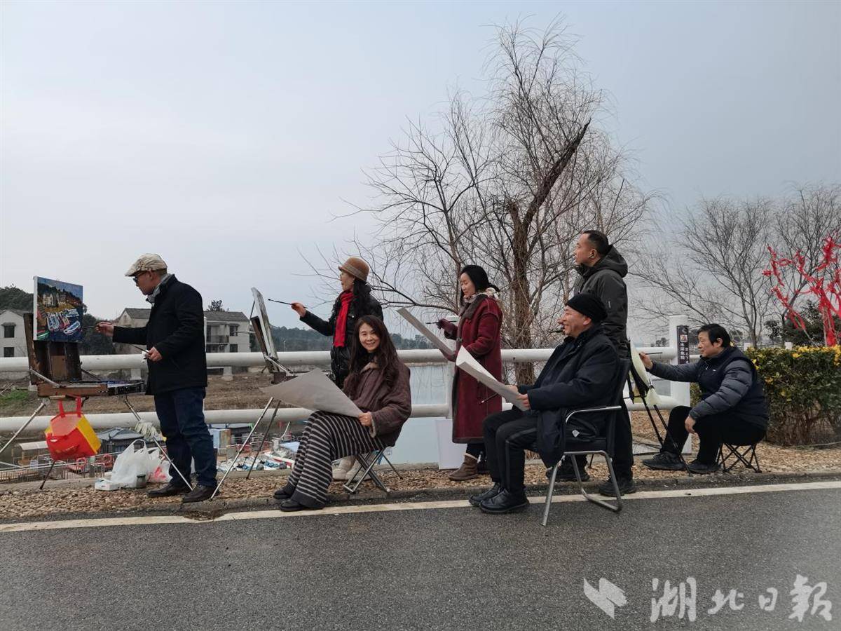湖北日报讯(通讯员刘小斌、马永刚) 在马年新春即将来临之际,2月9日,“广水画家画广水”采风团走进风光旖旎的月光海·明月湾,用笔墨勾勒随州一号旅游公路沿途的山水浪漫。