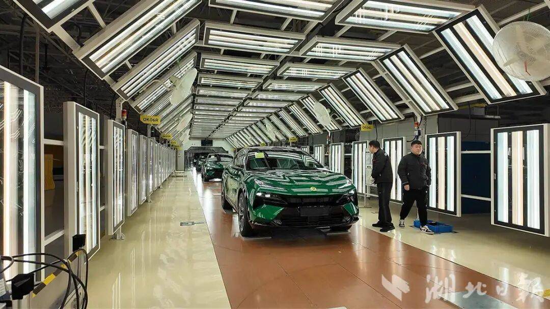 位于武汉经开区的莲花汽车全球智能工厂,工作人员正在总装车间内作业。(湖北日报全媒记者 杨文漪 摄)