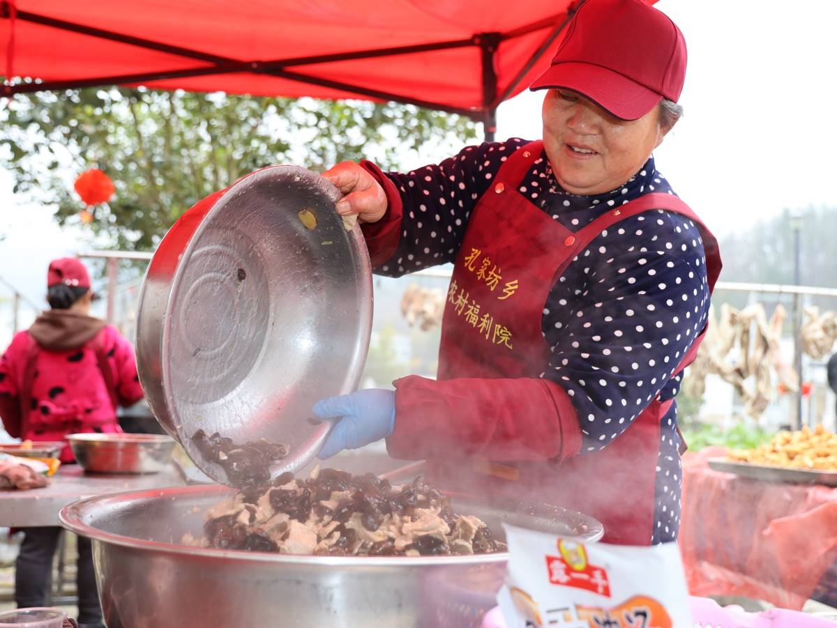 腊月廿三凌晨5点多,天还一片漆黑,英山县孔家坊乡农村福利院的一楼已经灯火通明。厨房里人来人往,不仅有福利院自己的厨师和护工,还有特意从外面请的大师傅。大家在厨房负责人王巧英的指挥下,正忙着准备年饭。