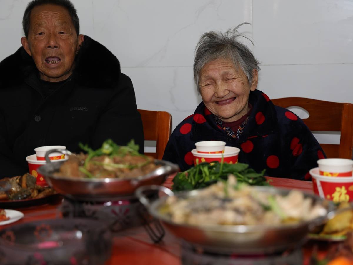 老人们在吃年饭。(湖北日报全媒记者 刘毅 摄)