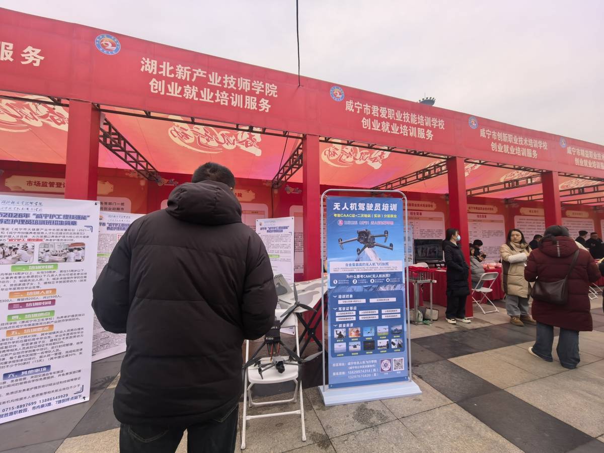 记者关注到,湖北新产业技师学院展位前同样围着人,无人机驾驶成为年轻求职者的新向往。据介绍,2025年,咸宁职院连开多期无人机“飞手”培训班,专为农民和返乡人员培训无人机农业应用实战技能。