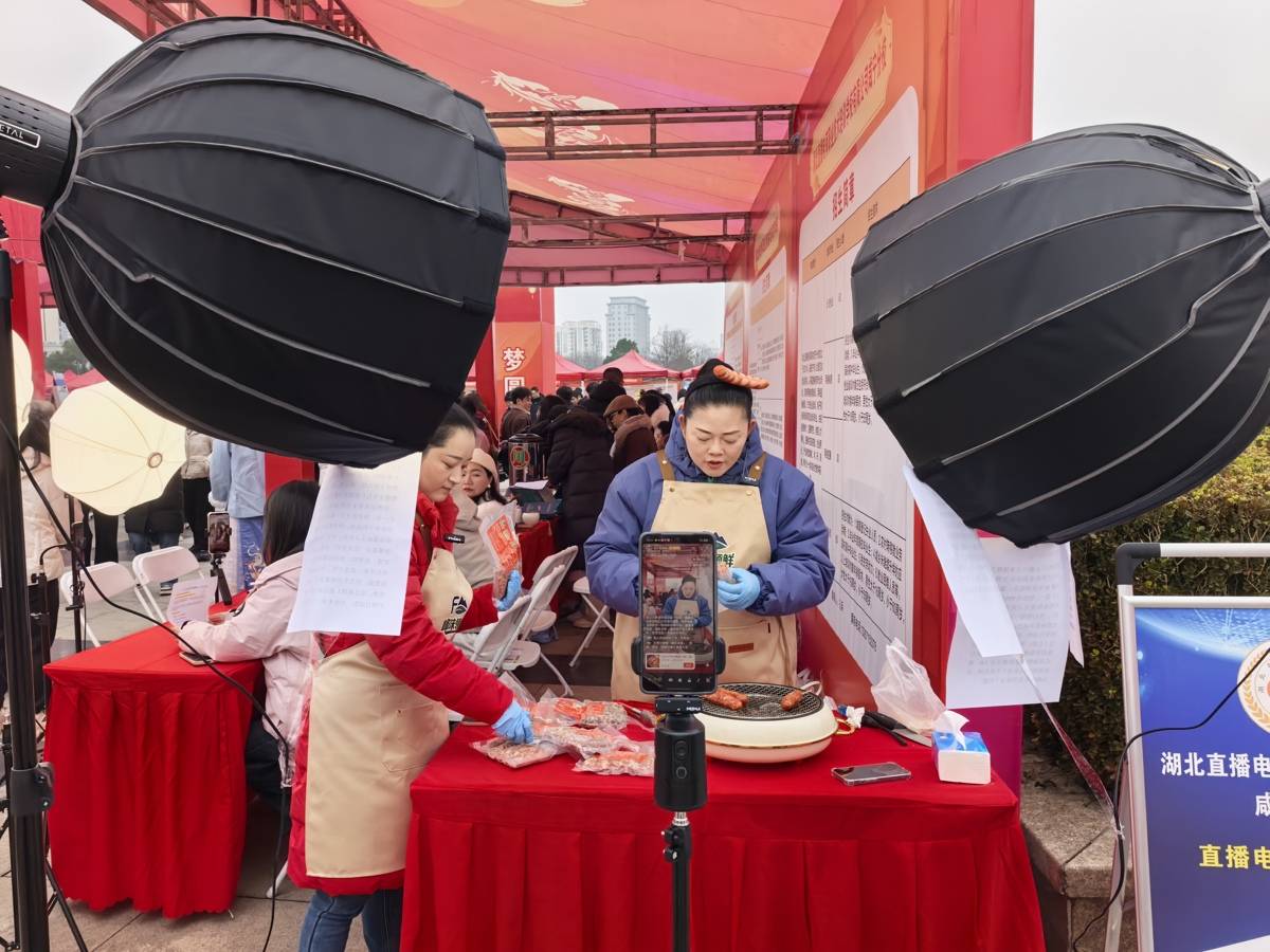 打开补光灯、支起手机支架,湖北直播电商职业技术培训学校咸宁分校把“移动课堂”直接搬到了招聘会现场。