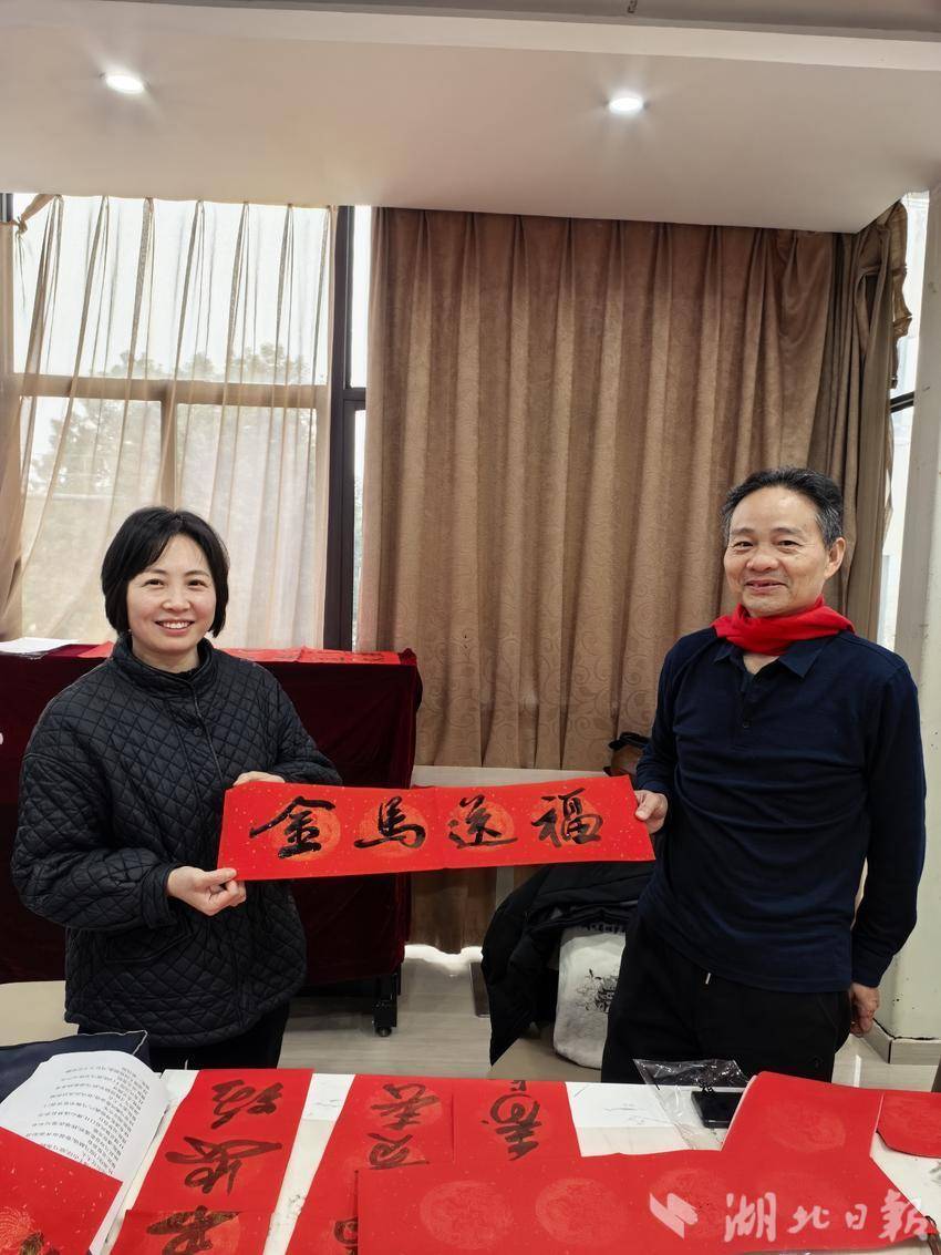“马跃盛世千家喜,春满荆楚万象新”“政通人和千家暖,国泰民安万户春……”一副副饱含深情的春联,在行云流水间跃然纸上。居民们或驻足欣赏,或排队等候,脸上洋溢着幸福的笑容。现场不仅有传统的福字、春联,更有书法家根据居民个性化需求“量身定制”的佳句,将“文化惠民”的“惠”字落到了实处。