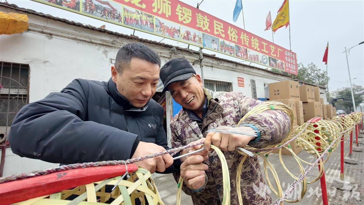 2月10日,湖北日报全媒记者跟随老师傅扎龙灯。(湖北日报全媒记者张灿摄)