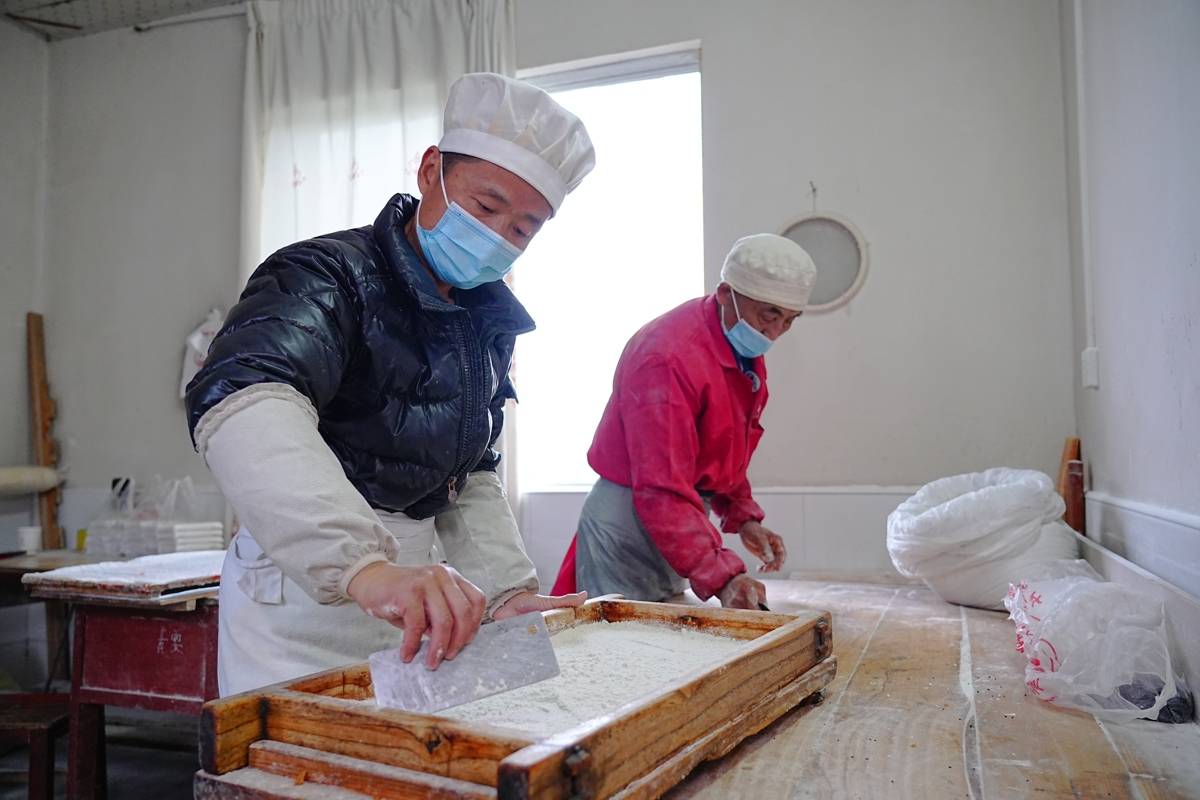 刚出炉的水晶糕温润如玉,咬一口,糯米的醇、芝麻的香、麦芽糖的甜,在舌尖轻柔化开,甜得恰到好处。专程从市区赶来的周先生说,自己在外面打拼多年,每年回家第一件事就是来买这口糕,“这是乡愁,是团圆的味道。少了它,年就不完整了”。