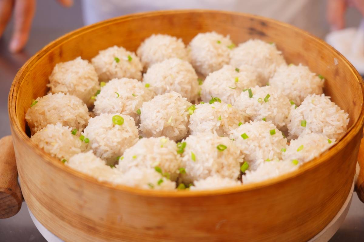 用筷轻夹,圆子弹而不散。入口时,外层糯米温润软糯,内里肉馅鲜嫩弹牙,间或有马蹄的清脆,口感层次分明,余味绵长。