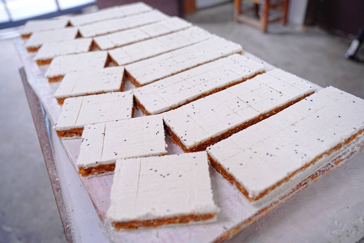 最见功力的,是擀制面皮。十斤重的面团,经近一小时的揉、抻、擀、压,最终化为十余米长、薄如蝉翼却韧而不破的“面卷”。阳光透过来,莹润生光。这面皮切条微炸后碾碎,与麦芽糖慢火炒成棕黄晶亮的馅料。最后,一层糕粉、一层馅料,再一层糕粉,在木模中压制定型,脱模切块。