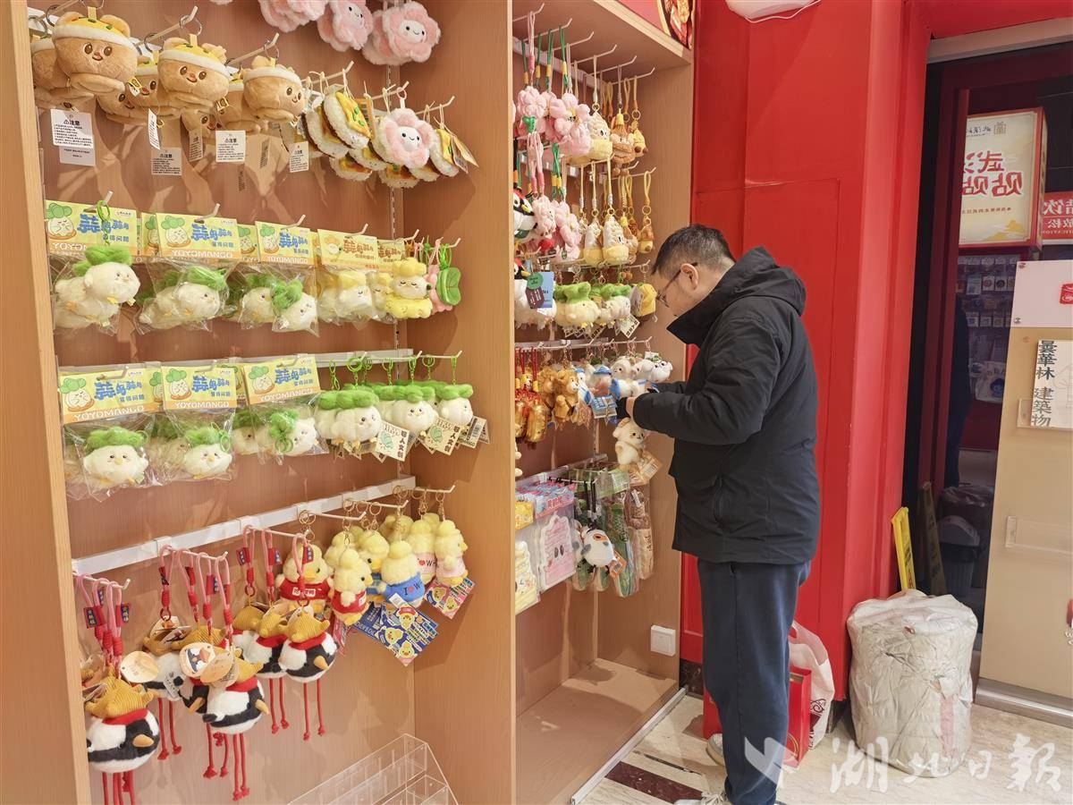 消费者在购买蒜鸟玩偶。(湖北日报全媒记者林晶 摄)