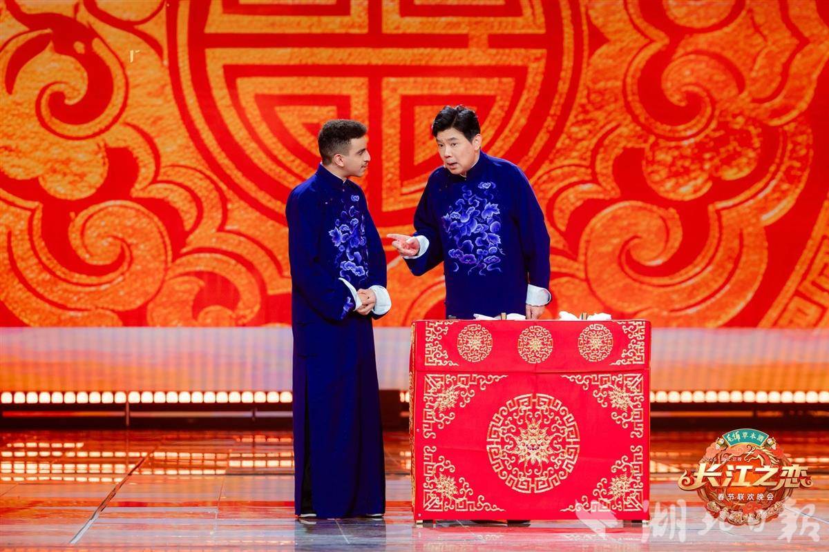晚会同时注重贴近百姓生活,洋溢浓厚“烟火气”。相声《武汉话》由外国友人学说地道方言,趣味横生;表演唱《走在同一座城》聚焦武汉本土生活,唱出普通人的梦想;小品《老板麻辣烫》则以麻辣烫与热干面的混搭故事,笑料十足地呈现湖北特色生活气息。