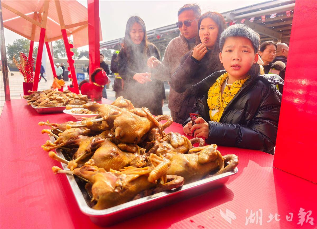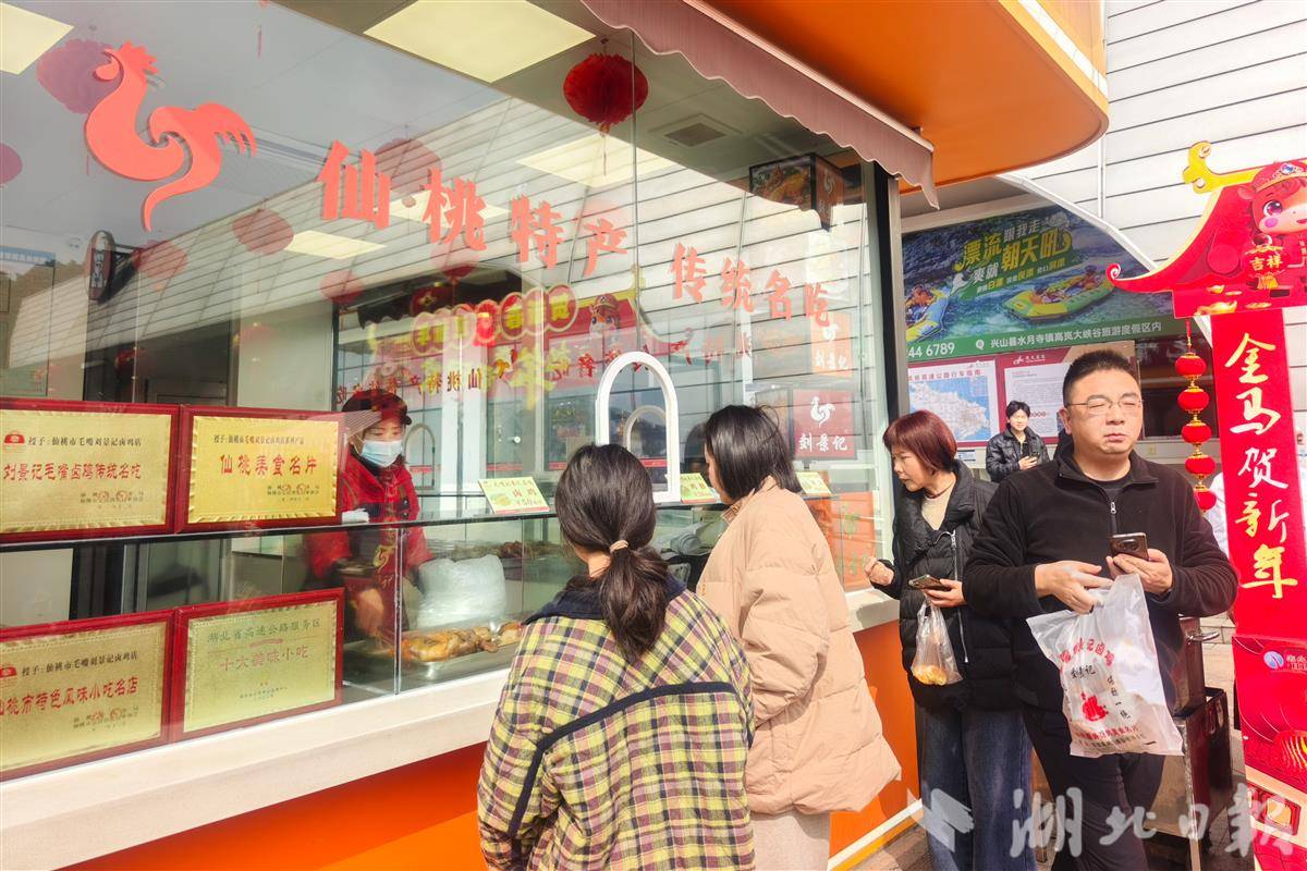 “再来一只!这卤鸡真香。”“再来份鸡杂。”窗口前有五六位旅客正在排队。43岁的四川达州旅客李绍银将整鸡手撕成一盘,迫不及待地吃了一口鸡腿,连声称赞:“软烂鲜香,入口即化。”他和妻子在浙江义乌做服装生意,年前开车回四川老家过年,途经仙桃服务区歇脚。他告诉湖北日报全媒记者,一定要带上一只毛嘴卤鸡回家给家人品尝,把荆楚年货带回家。