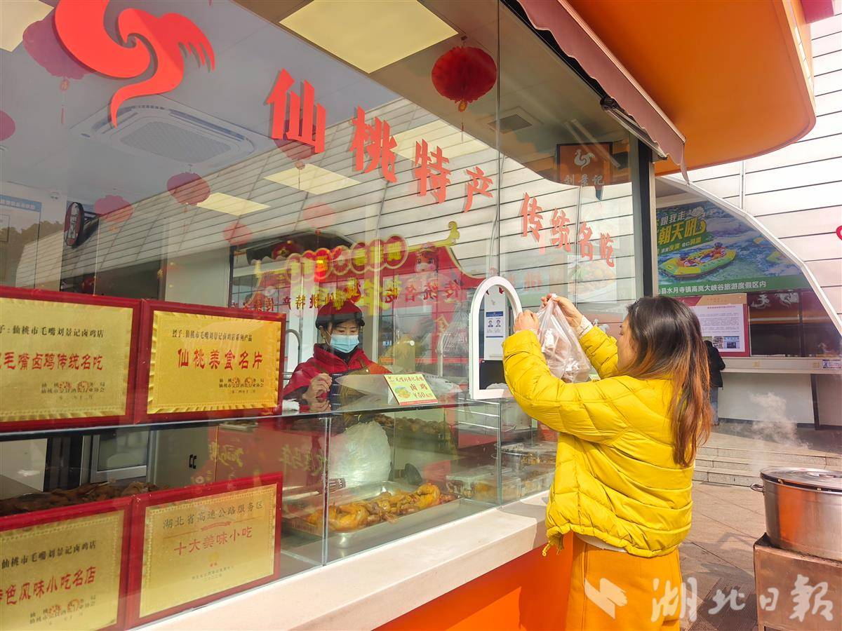 沪渝高速仙桃服务区毛嘴卤鸡受欢迎(湖北日报全媒记者 柯皓 摄)