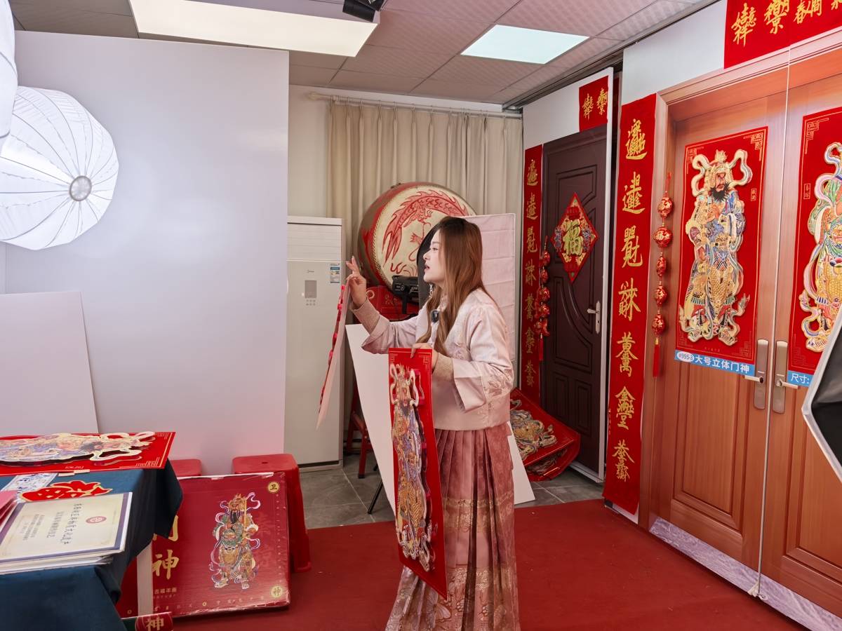 直播间外的走廊里,几个刚下播的主播正靠在墙边短暂休息。“春节前,直播间里的每一分钟都很珍贵。”龚倩玲说,“我们不仅是在卖产品,更是在完成一场传统文化的即时传播。”通过这些90后、00后的生动讲解,传统门神褪去了陈旧感,秦琼与敬德的故事、植绒烫金的工艺、镇宅平安的寓意,被转化成现代人易于理解的语言,乐意接受的年俗。