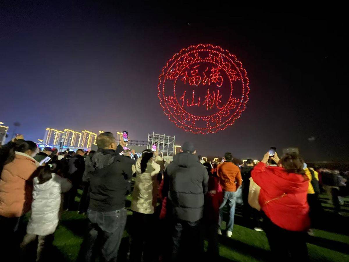 无人机编队组成“福满仙桃”字样。湖北日报全媒记者 杨康 摄
