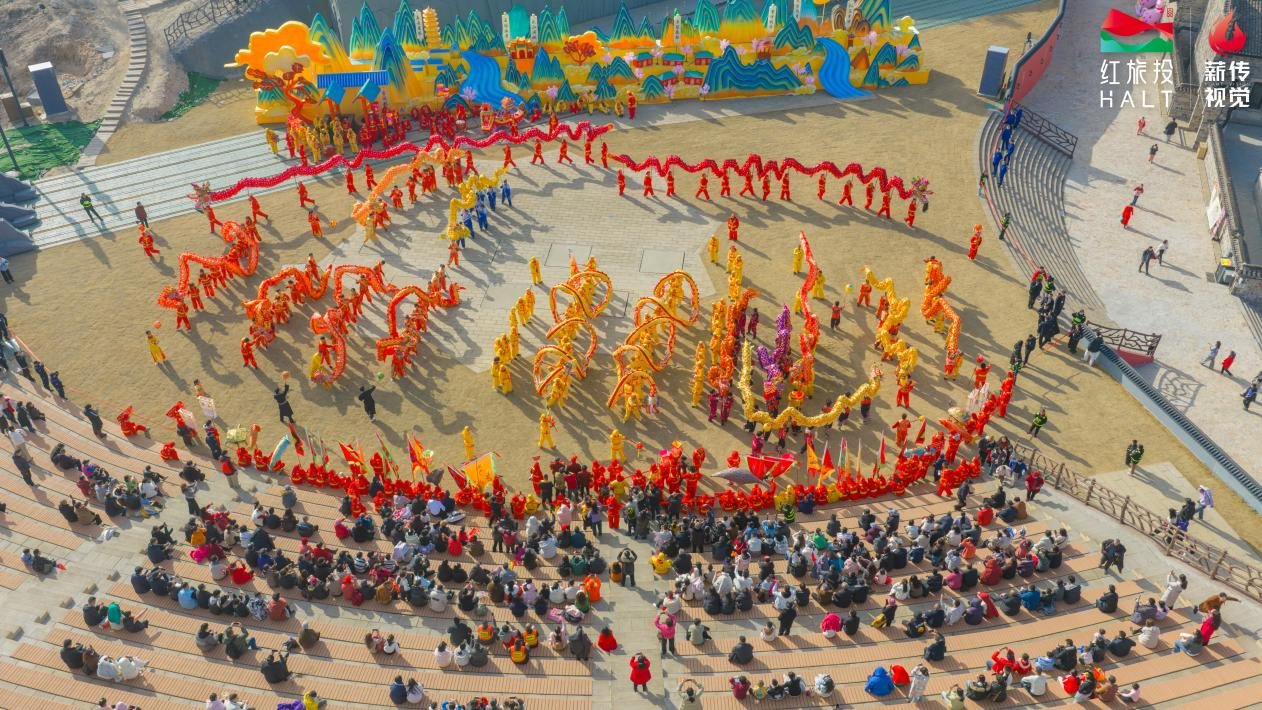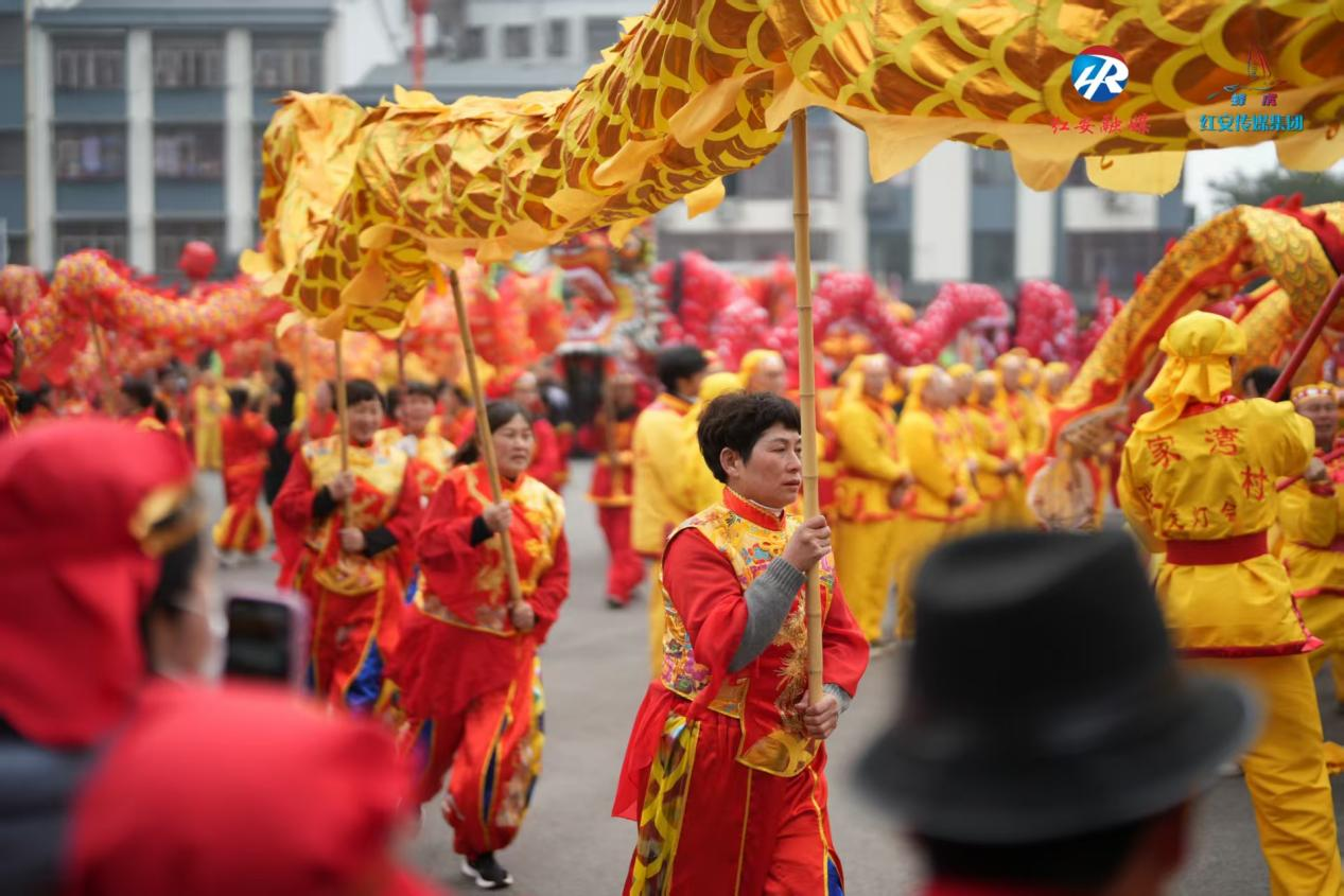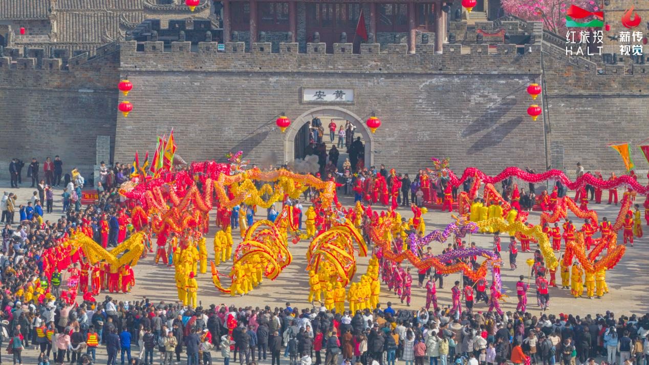 行至黄安古城·影视幻城,四大方阵分赴不同点位同步展演,龙灯表演的热闹与观众的赞叹声回荡在古城小巷,将年味推向高潮。