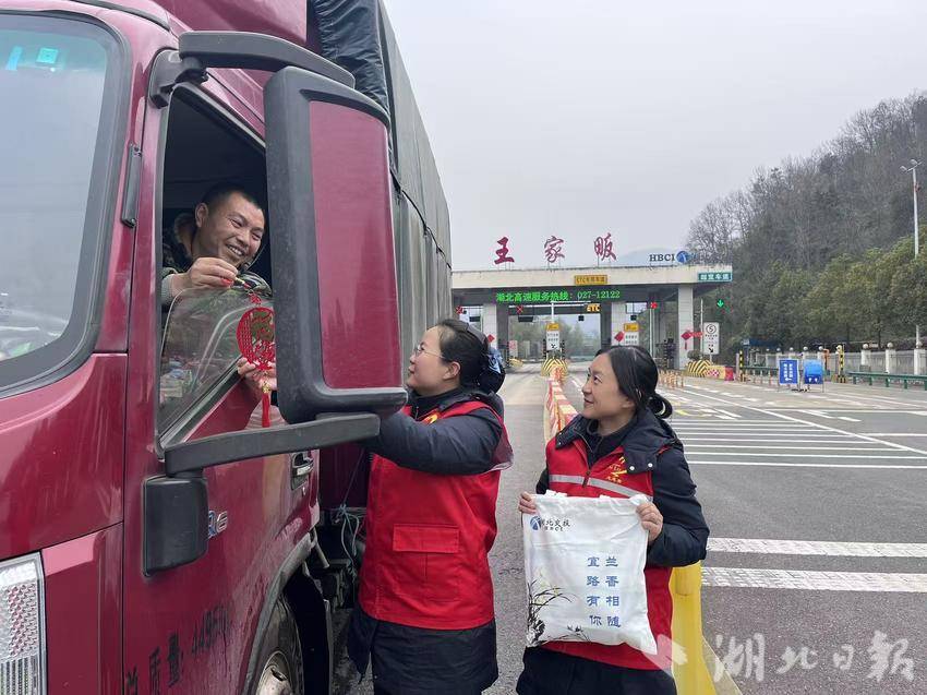 “师傅,路上辛苦了,挂上这个福字,愿您把福气带回家。”志愿者们将精心准备的礼包和福字挂饰递进车窗。“这份指南您收好,您在行驶途中注意安全行驶、切勿疲劳驾驶。”满满的祝福随着一句句叮嘱传递。一位常跑长途的张师傅感慨道:“原来只知道这里能加个热水,没想到现在还送福字、送指南,服务真是越来越周到了!”这简单的话语,是对志愿者的赞许,更是对湖北宜昌高速服务的肯定。