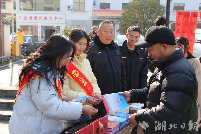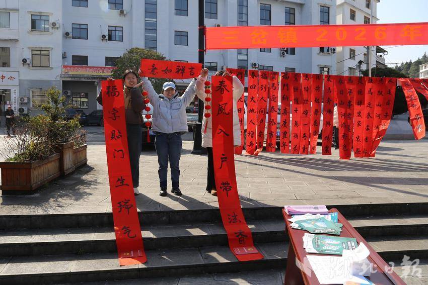 湖北日报客户端讯(通讯员 黄威 陈荣 邵山)2月12日,在马年新春即将到来之际,恩施市司法局三岔司法所联合镇文化站、镇市场监管所,在镇政府广场开展“法治春联进万家”主题活动。一份份喜庆的法治春联、一本本实用的法律读本,化作新春祝福,送到群众手中,让这个春节既有“年味”更有“法味”。