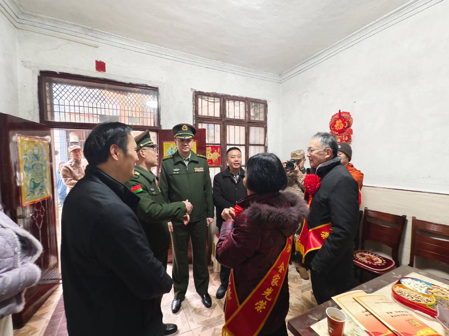 紧接着,慰问组一行来到清泉镇莲花池社区,为冷华智家属送达二级表彰喜报。慰问组与军属围坐交流,衷心感谢他们为国防事业作出的无私支持与默默奉献。领导们表示,军人是国家的脊梁,军属是军人坚强的后盾,希望他们继续鼓励亲人在部队安心服役、再创佳绩。冷华智家属衷心感谢组织的关怀,表示将一如既往支持国防事业,做亲人的温暖港湾。
