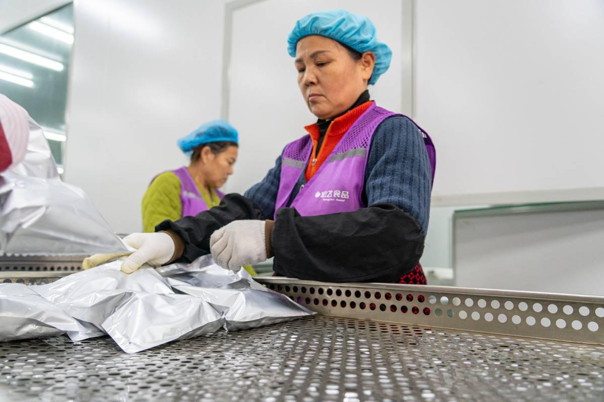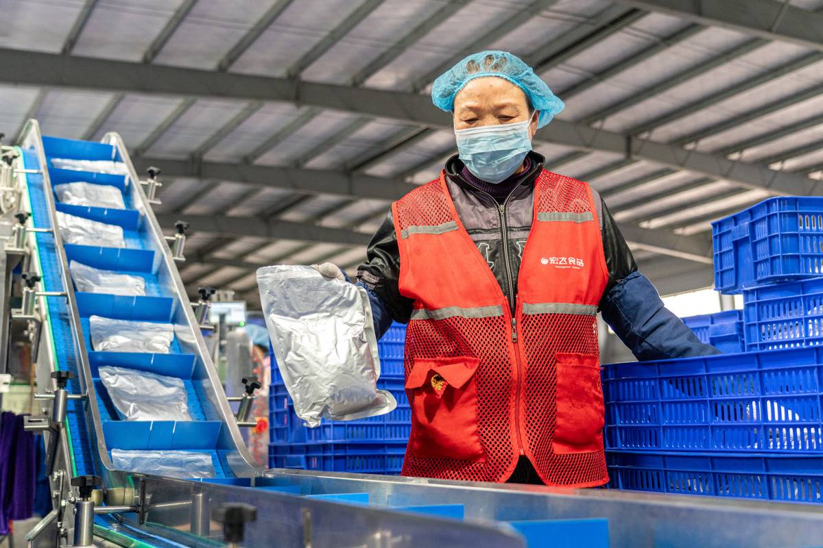 工人们在藕汤生产线上忙碌。(湖北日报全媒记者 王欣 通讯员 蔡青阳 摄)