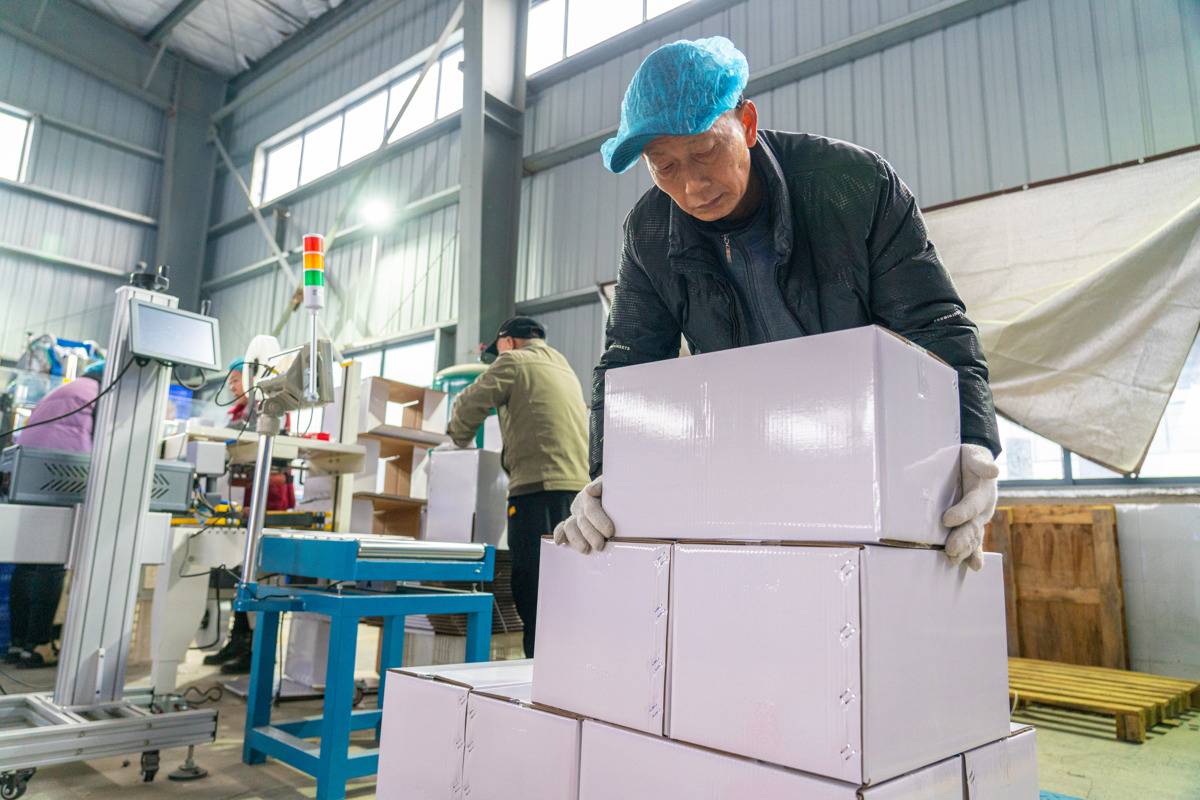 藕汤生产线上,工人们正忙着装箱打包。(湖北日报全媒记者 王欣 通讯员 蔡青阳 摄)