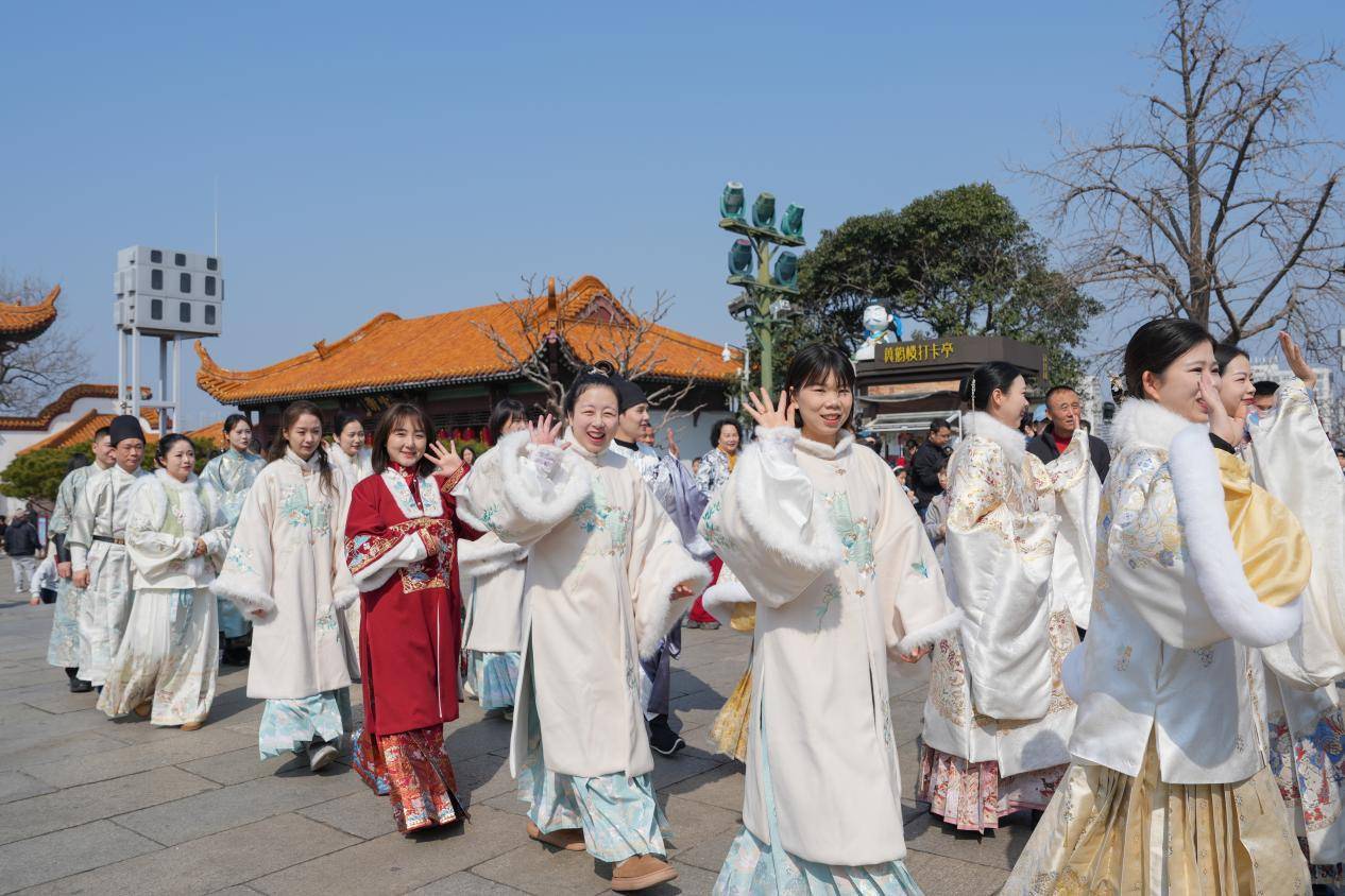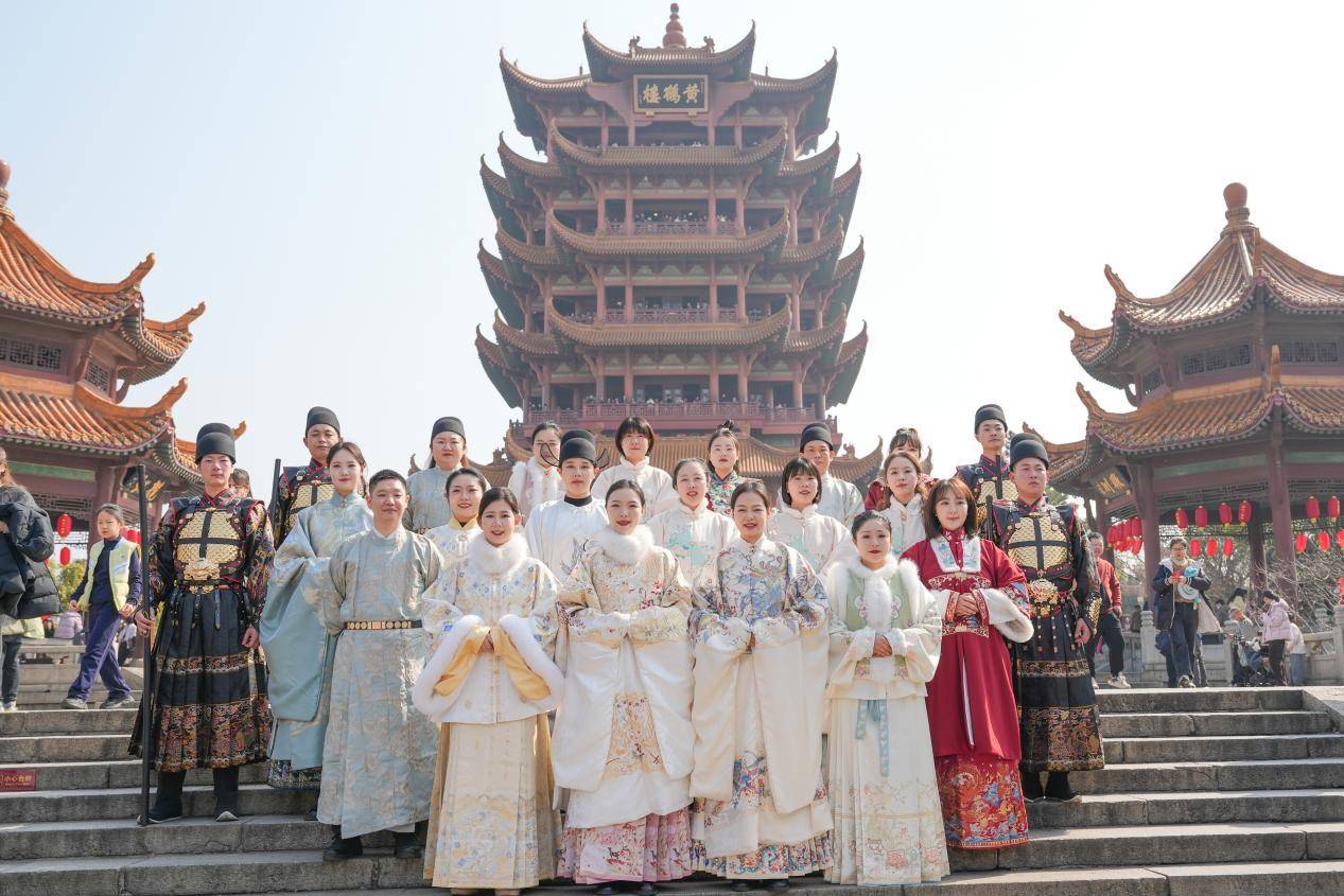 漫步黄鹤楼,你邂逅的将不再仅仅是历史建筑。2月15日起,黄鹤楼正式启动一项创新的全员古装上岗服务计划,所有一线工作人员身着考究的汉服上岗,从检票导览到文艺演出,从导游讲解到安全巡护,从文创销售到游客服务,工作人员以古风造型融入景区,旨在为游客构建一个从踏入景区便开始、贯穿全过程的沉浸式历史文化体验场景。