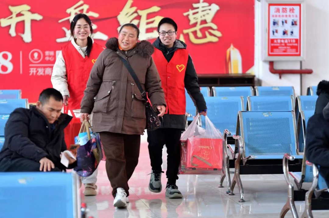 春节将至,岁末归乡,一句问候、一杯热饮、一次援手,都是春运期间最动人的温暖。连日来,在湖北各大火车站、汽车站、机场、高速公路服务区等地,青年志愿者们以青春热情传递家乡温情,以特色服务彰显青春风采,用青春力量温暖旅客返乡路。