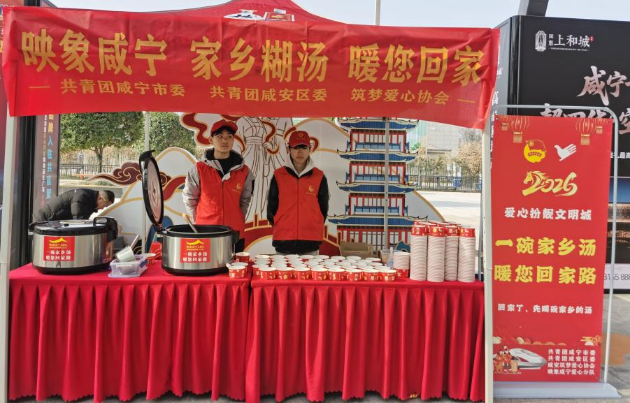“哎~这‘糊汤’还阔以,是这个味儿哈!”2月11日,在咸宁北火车站,咸宁团市委联合咸安团区委、咸安区筑梦爱心协会,为返乡旅客提供引导咨询、送上咸宁特产“糊汤”,用乡音乡味乡情迎老乡回故乡建家乡!