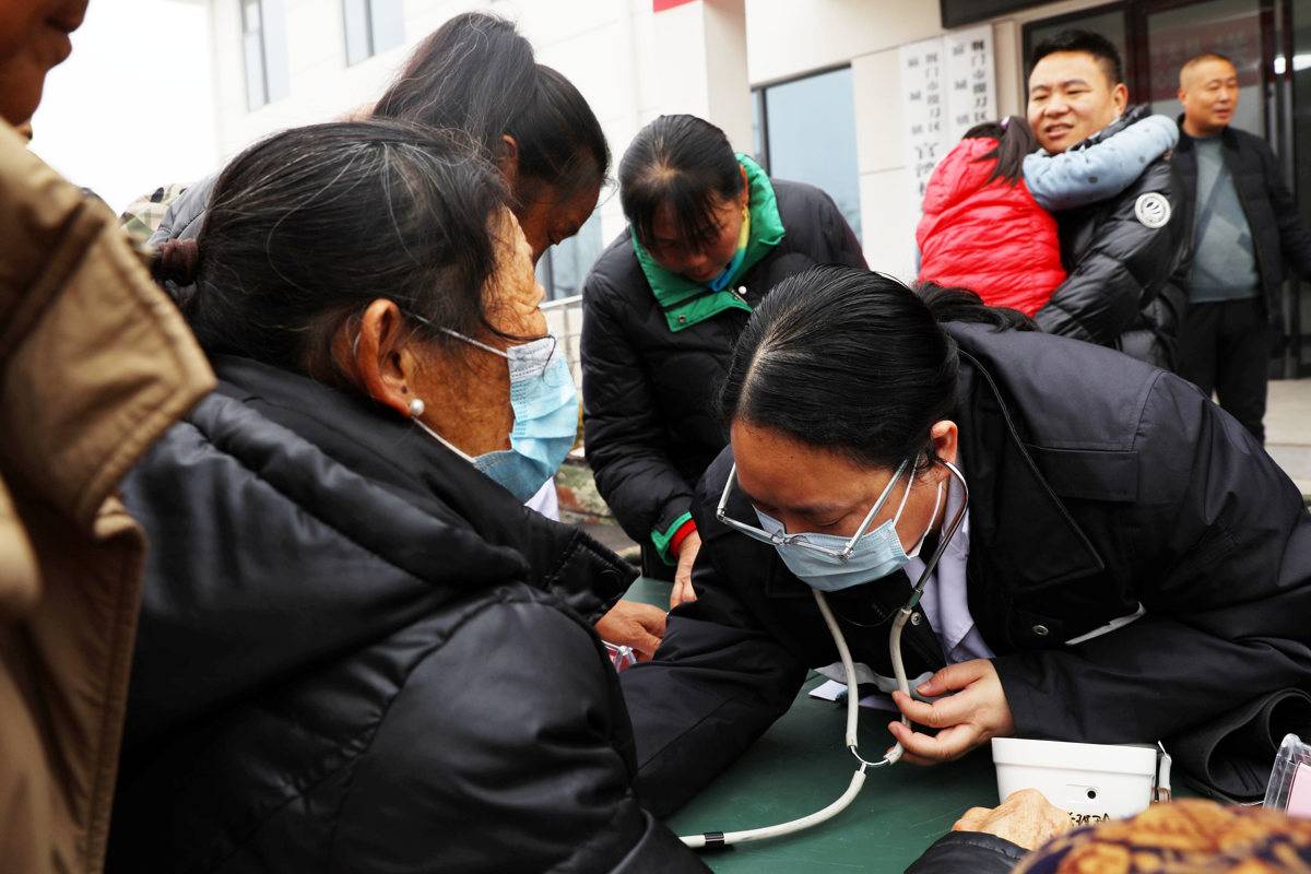 义诊现场,军地医护人员携带便携式医疗设备,耐心为村民开展血压血糖检测、常见病筛查、慢性病复诊等服务,细致询问既往病史、查看病历资料,并针对高血压、关节炎、糖尿病等常见病,解答村民关心的问题,普及保健知识。