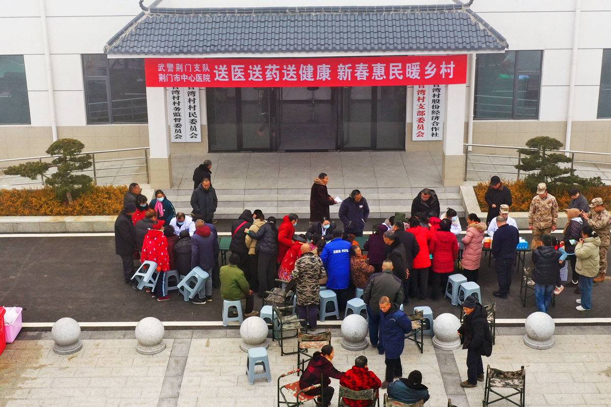 近日,武警湖北总队荆门支队联合荆门市中心医院开展“送医送药送健康,新春惠民暖乡村”主题健康服务活动。军地医护人员走进荆门市掇刀区麻城镇官湾村,为村民提供便捷高效的诊疗服务,用专业与温情守护乡村群众健康,以实际行动践行军民同心、帮扶惠民的初心。