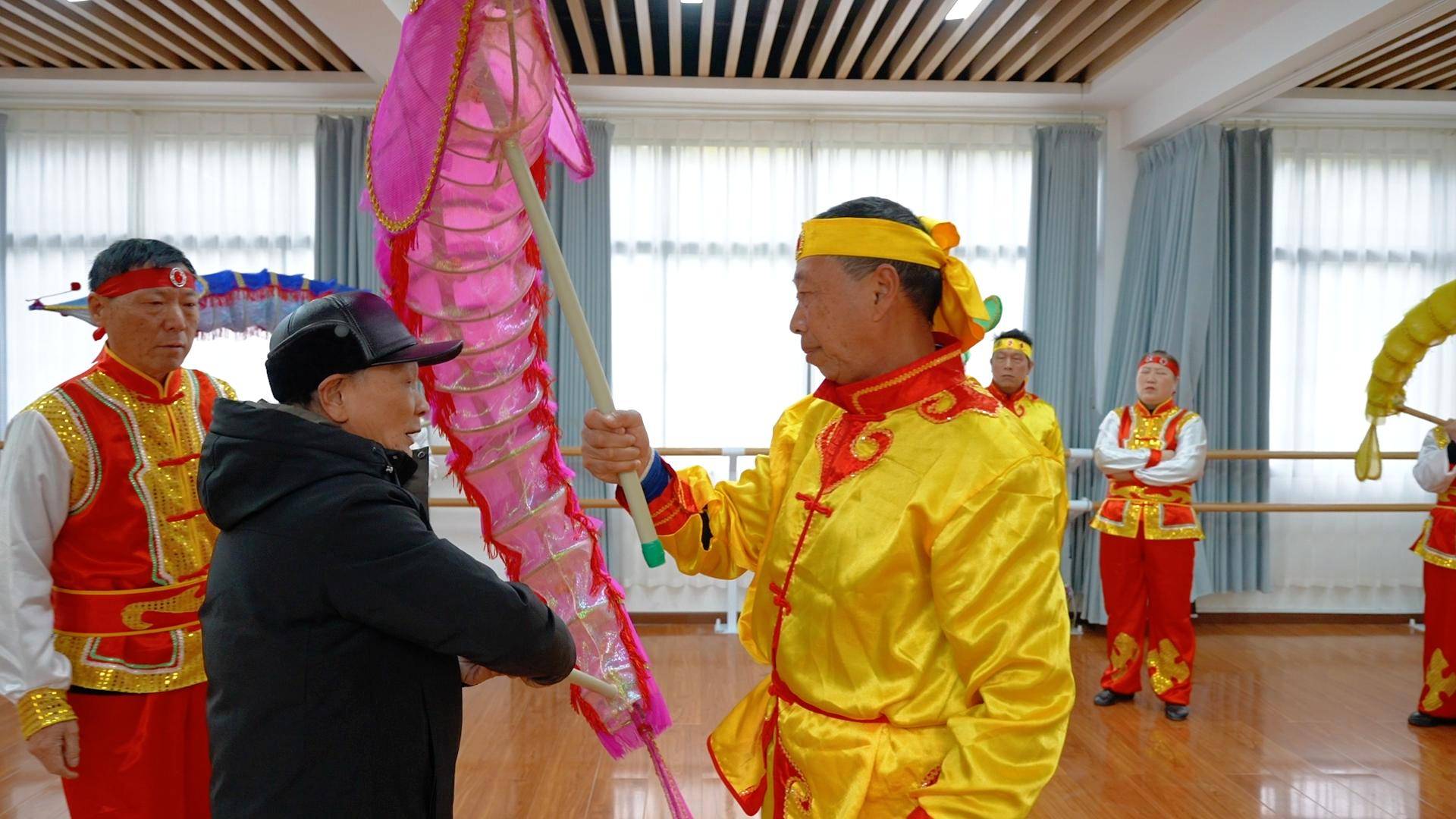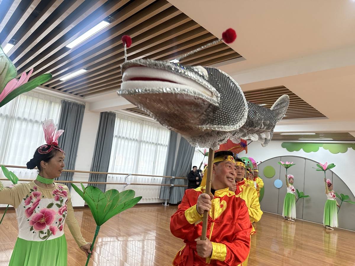 “五虾闹鲇是正宗的年味儿!国家级非遗就在我们身边,我们特别自豪,希望通过我们的表演,让更多人感受到传统文化的魅力。”舞蹈队员、66岁的社区党员黄于斌说。