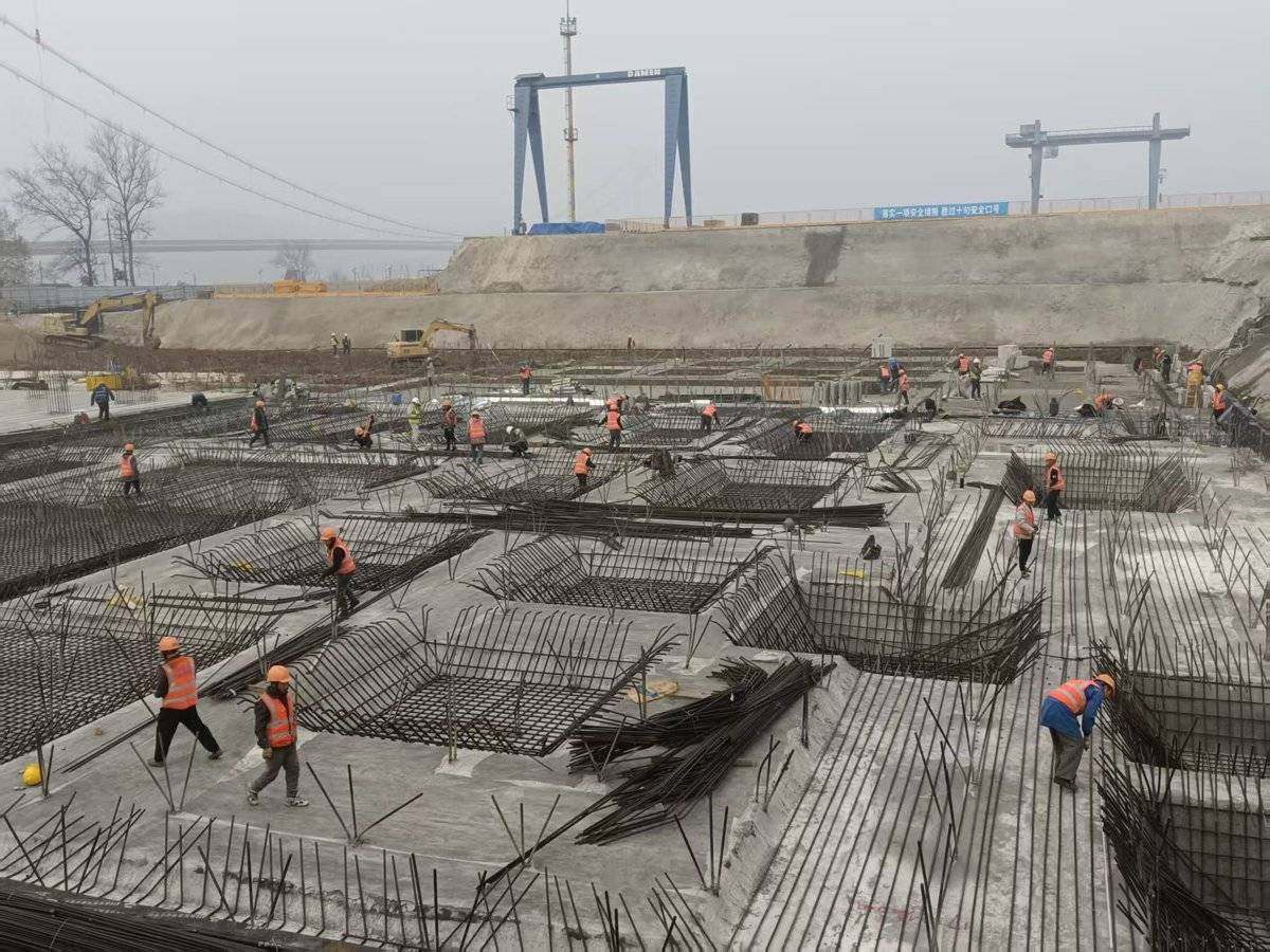 始建于1956年的宜昌船厂旧址上,工业桁架静静伫立。作为宜昌市四个重大项目之一,龙园项目正对老厂区进行活化改造,未来将建成大型文旅综合体。春节期间,项目部响应宜昌市文旅项目不停工号召,约30人坚守岗位,攻坚底板浇筑窗口期。