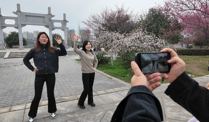湖北日报客户端讯(通讯员刘蕾、胡娟)春节前夕,暖阳高照。谷城汉江湿地公园内游人如织,一派喜气洋洋的节日景象。不少市民游客选择在明媚的春光里,与家人朋友一同漫步于步道,或在梅园赏梅,享受亲近自然的惬意时光。