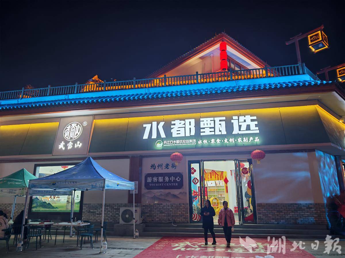 入夜,均州老街灯火璀璨、人头攒动。在丹江口水都供应链集团“水都甄选店”里,集纳了当地50余种新款水产品,包括瓶装水、饮料、养生茶等。“每天进店的市民游客超2万人次,十个人就有一个人下单。”该店负责人李律说。