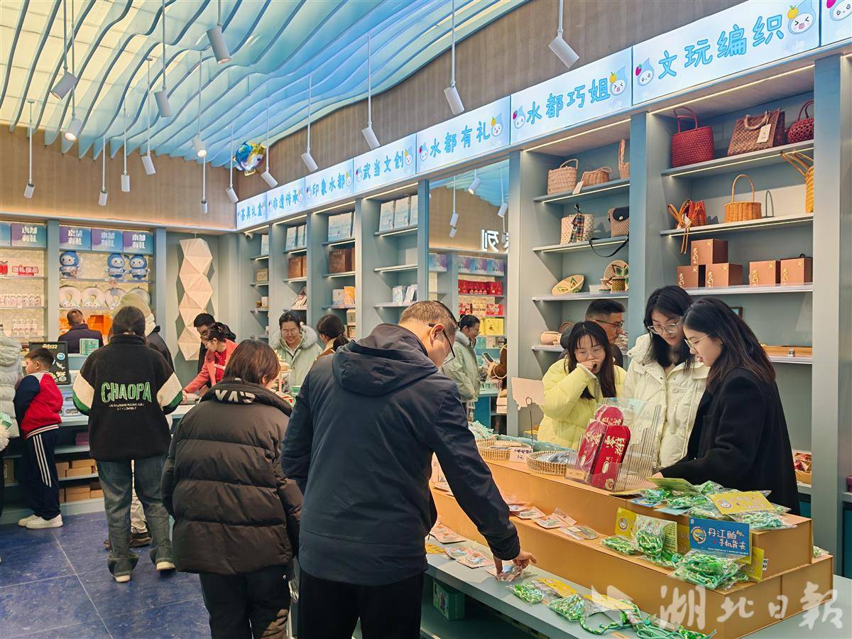 丹江口水都供应链集团“水都甄选店”在均州老街开业,50余种新款水产品热卖。(记者刘天纵摄)
