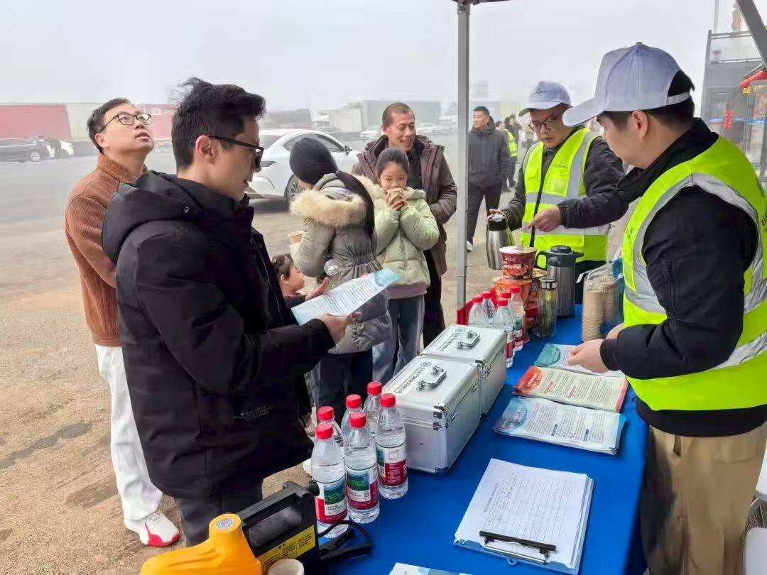 这是长江财险“暖心回家路”春运服务的一幕。2月13日至15日是春运高峰期,长江财产保险在湖北武汉龚家岭、十堰西、荆州东、咸宁北站等4处高速收费站设立服务点,200余名工作人员24小时值班,为过往司乘免费提供热水、矿泉水、方便面等便民物资,同时开展交通安全及保险知识宣传,以实际行动履行企业社会责任。