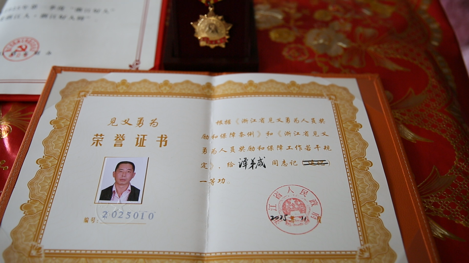 谭弟咸的家就在晓溪河边,小时候曾在河里戏水,让他略习水性,成为水中连救三人的见义勇为英雄。去年11月,浙江省人民政府授予他一等功奖章和证书。2024年8月12日下午,在浙江省绍兴市上虞区陈溪村管溪勇救落水儿童的义举之后,他的工作和生活如常,他依然是那个平凡的土家汉子。