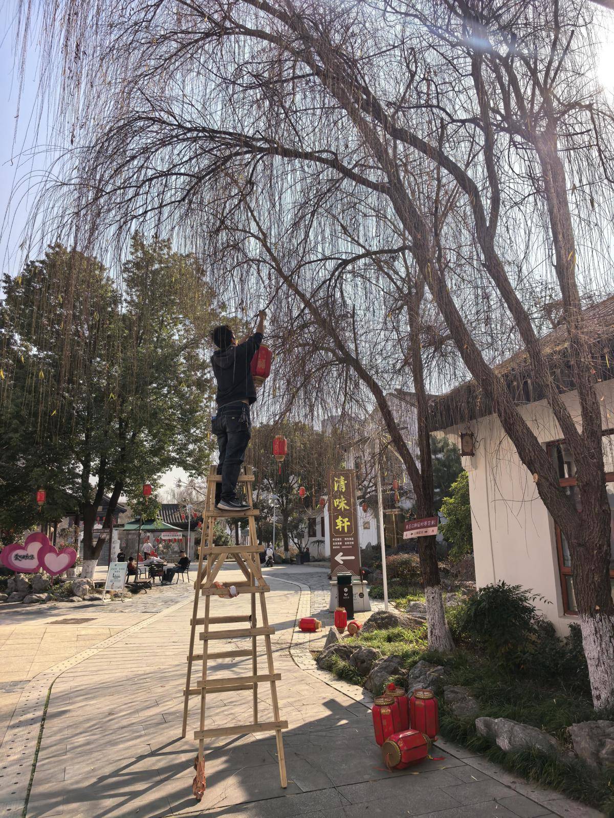 工作人员抓紧挂灯。(受访单位供图)