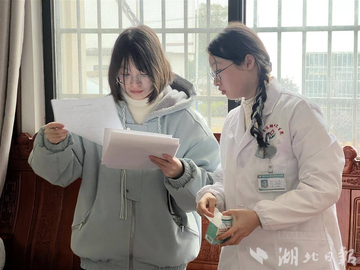 湖北日报讯(记者汪菁华、李雪茹、通讯员张春红)2月14日,腊月廿七,江夏区湖泗街的乡间小路上,雾气里裹着年味。电动车载着00后双胞胎村医姐妹方非方典,稳稳驶进株山村。停好车,姐妹俩熟门熟路地走进村民许运银家。“借两个板凳用用哦!”方典一点也不讲客气,在门边搬来两个矮脚凳,又找了个高塑料凳——一个临时的“慢病检查摊”就在晨光中开张了。
