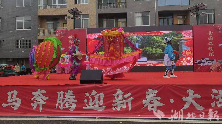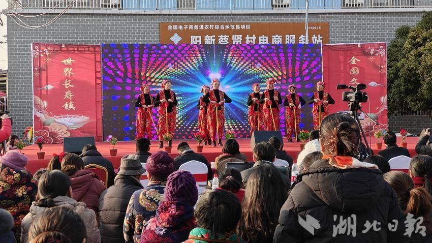 这场覆盖全域的文化盛宴,吸引力早已跨越县域边界。在法隆村村晚现场,来自咸宁市通山县的网红歌手毛慧倾情献唱《童年老家》,台下坐满了翻山而来的邻县乡亲。“回到这里,就像回到亲人身边一样亲切。”毛慧由衷感慨。
