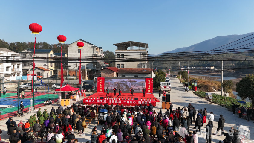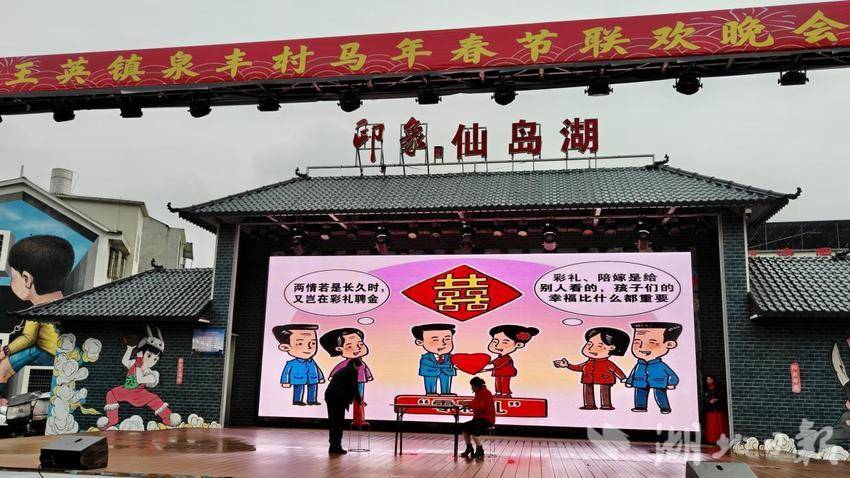 据统计,8场村晚累计上演节目150余个,其中移风易俗、政策宣讲、安全知识等主题节目占比超四成。台上节目精彩纷呈,台下的交流同样火热。每场“村晚”开演前,镇村干部用方言土语宣讲党的创新理论,借乡亲们返乡过年之机,群众会、乡贤会也开到了演出现场,大家围坐一堂,从“平安过年、干净过年、文明过年、温暖过年、廉洁过年”聊起,共议移风易俗、森林防火、清洁家园等身边实事。一场场接地气的村晚,变身政策宣讲“小课堂”、干群互动“连心桥”、乡村治理“好帮手”,让文明新风吹遍仙岛湖畔,让年味更浓、民心更聚、乡村更旺。
