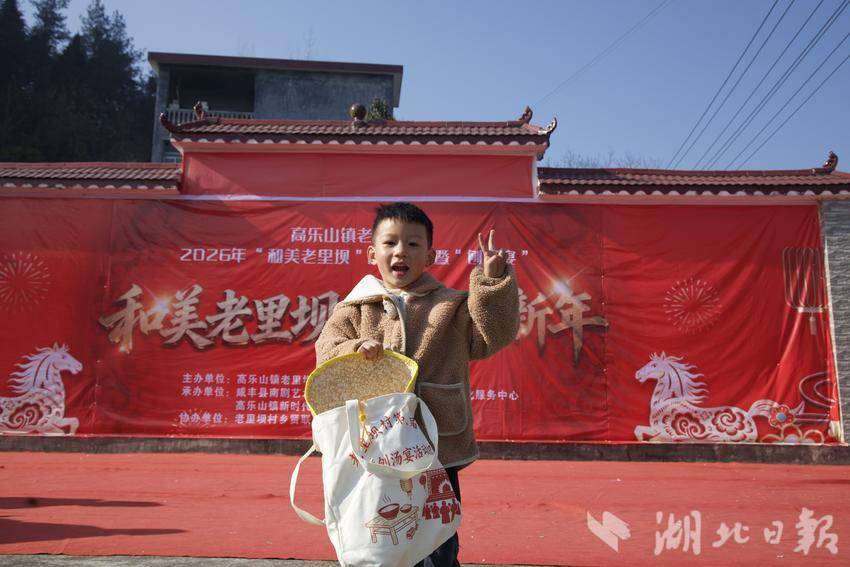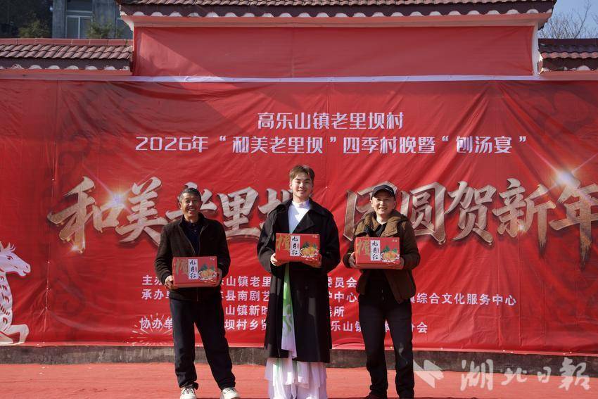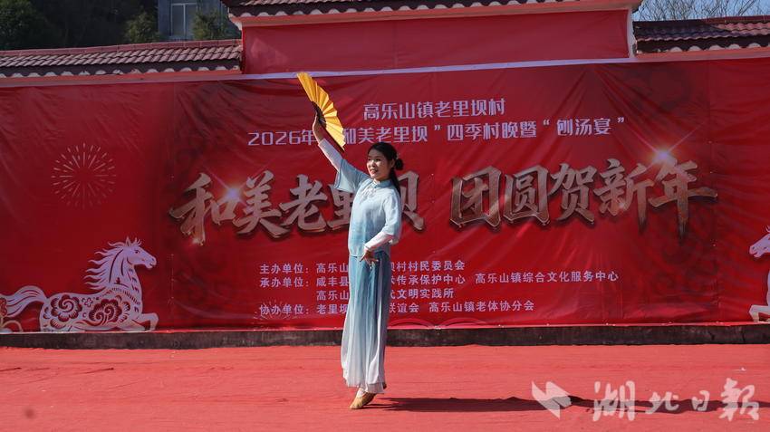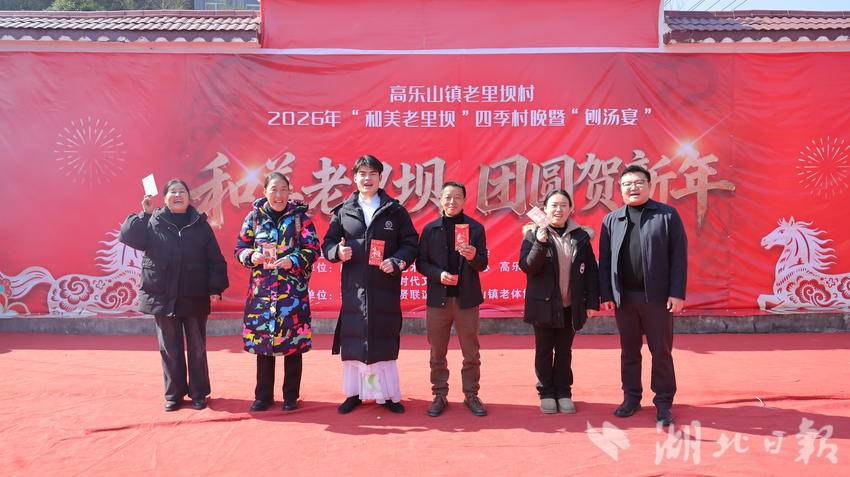 2月14日,农历腊月二十七,咸丰县高乐山镇老里坝村安置区文化广场上人头攒动,欢声笑语不断。2026年“和美老里坝”四季村晚暨刨汤宴活动在这里热闹举行。全体村民欢聚一堂,喜迎新春。