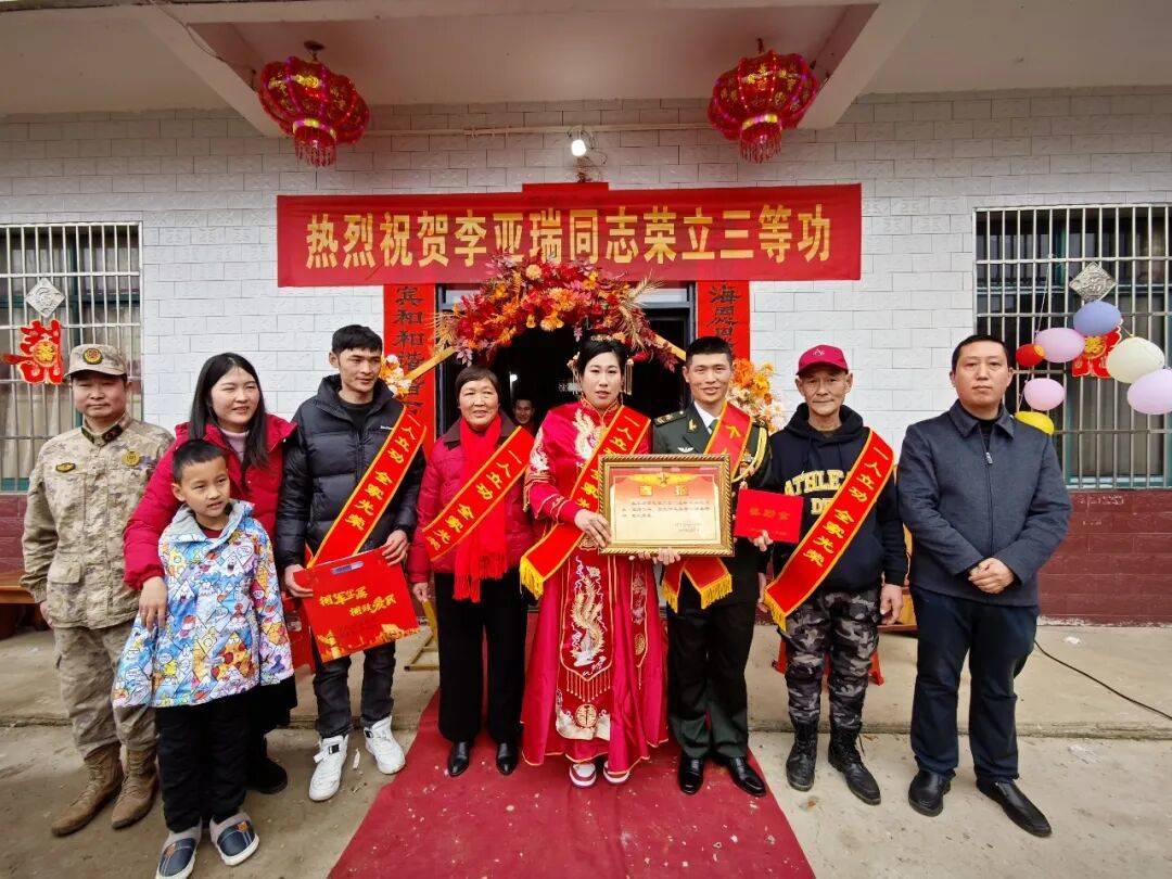 “在春节这个阖家团圆的传统佳节前夕,我们专程将李亚瑞同志荣立三等功的喜报送到他的婚礼现场,让光荣加倍,喜气盈门!”大悟县四姑镇党委副书记汪春洲在婚礼现场高声宣布,话音未落,现场已响起热烈掌声。李亚瑞自2012年入伍以来,多次参加上级组织的各类比武竞赛,取得优异的成绩,先后四次获得嘉奖,两次被评为优秀士兵,在2025年度工作中表现突出,成绩优异,荣立个人三等功。