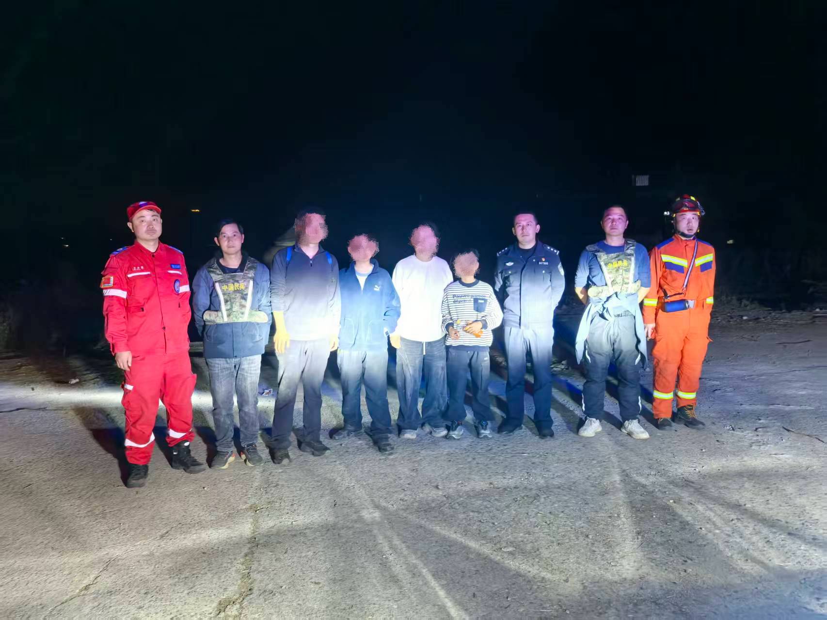 途中,救援人员通过电话引导被困游客发送位置经纬度,并利用专业设备精准定位。经过艰难搜寻,晚上10时16分,救援队成功找到四名被困人员。经初步检查,四人均未受伤,仅受到惊吓。稍作休整后,救援队于当晚10时59分将全部人员安全护送下山。