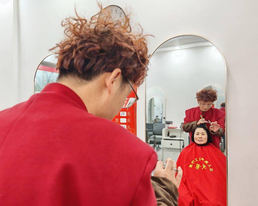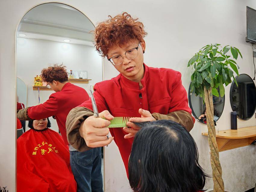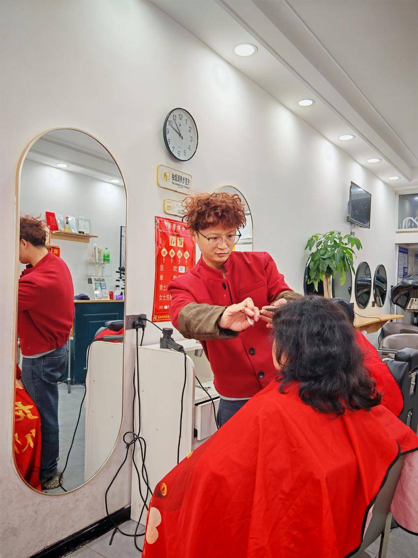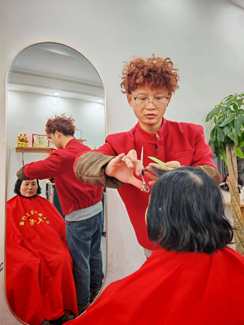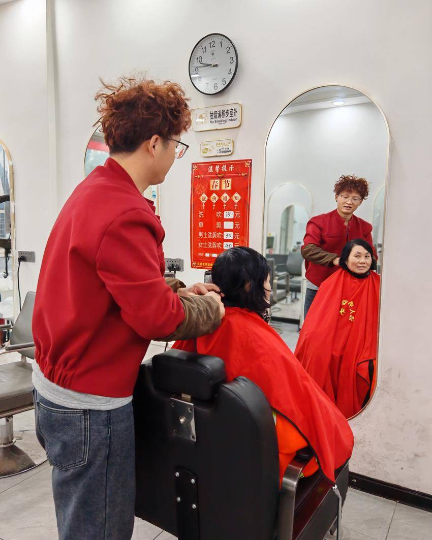 湖北日报客户端讯(通讯员陈保忠)2月16日,除夕,云梦县西大路达人秀理发店,除夕不打烊,不经营性对外营业,只为老弱病残者和环卫工、快递哥等免费理发。理发师黄向一早就来到店铺,开门迎接老弱病残等需要理发的特殊人群的到来。他看到一名环卫工正在扫地忙碌,主动上前问候,上前邀请到店铺为其免费理发。