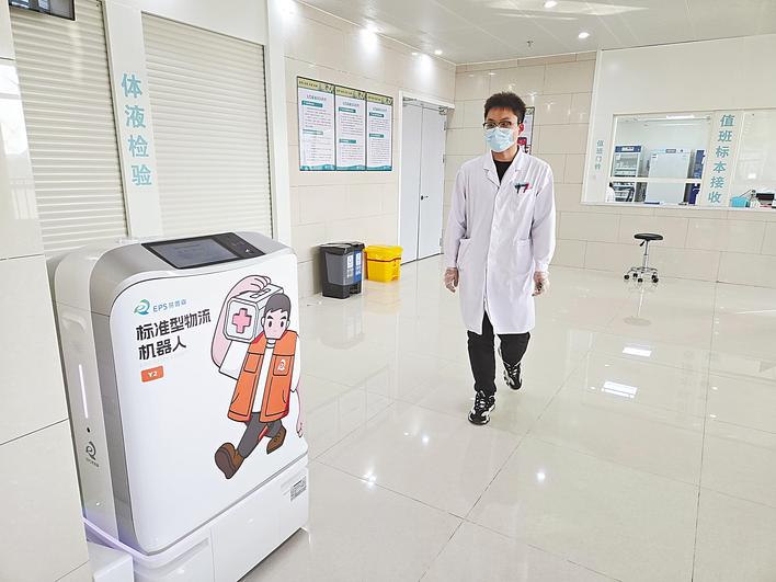 2025年12月4日,东津院区引入智能物流机器人。它们无需人工引导,依靠预设路线自主导航,能精准避让行人与障碍物,独立搭乘电梯、定点停靠,完成物资的接收与配送,24小时不间断运行。