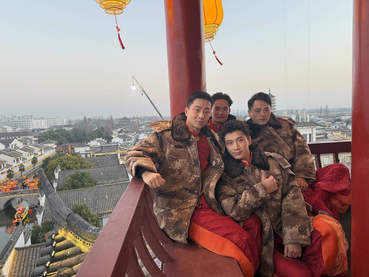 “一度练得胳膊都抬不起来了。”演员李炜铭回忆起排练过程,语气里带着笑意。为了这次演出,他们提前准备了两三套动作方案,节奏快、难度大,且每一套动作都要练得非常熟练。后来出于安全考虑,导演组保留了最经典的动作,最终呈现的舞蹈仅一分多钟。