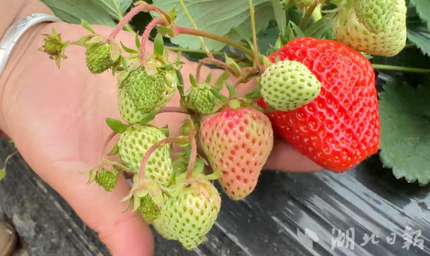 创业之初,为打开本地市场,夫妇俩曾到黄州城区、团风县步行街摆摊推广。凭借过硬品质,他们的草莓迅速赢得口碑,销路稳步拓宽。草莓每年12月上市,次年4月底至5月初结束采摘,采收期长达5个月。春节期间,采摘需求持续旺盛,日均销量达数百斤,不少水果店、市民提前预订,将新鲜草莓当作年货馈赠亲友,园区形成了“批发+采摘”的稳定销售模式。