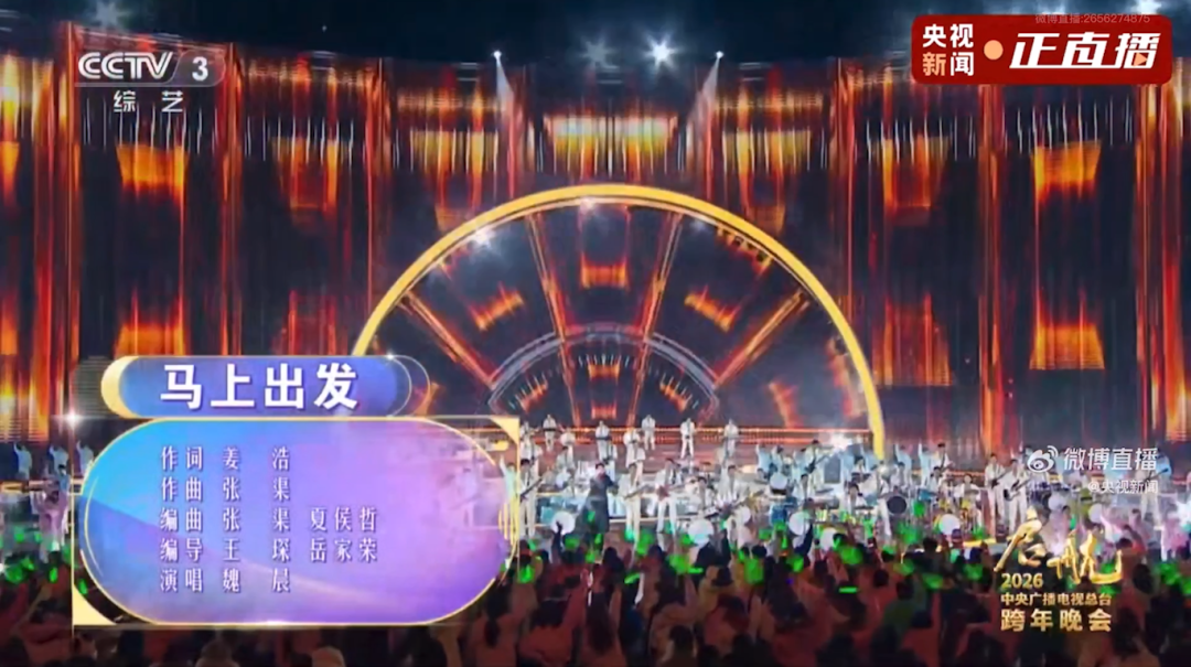 《启航2026——中央广播电视总台跨年晚会》上,作为零点钟声敲响以后的第一个节目,著名歌手魏晨以一曲充满活力的《马上出发》点燃全场。这首歌的作词人,也是姜浩。他在接受采访时表示:“今年恰逢马年,以‘马上出发’为核心,将人生说走就走的态度写成了一首歌。希望大家听从内心的召唤,随时准备踏上探索的旅程。”