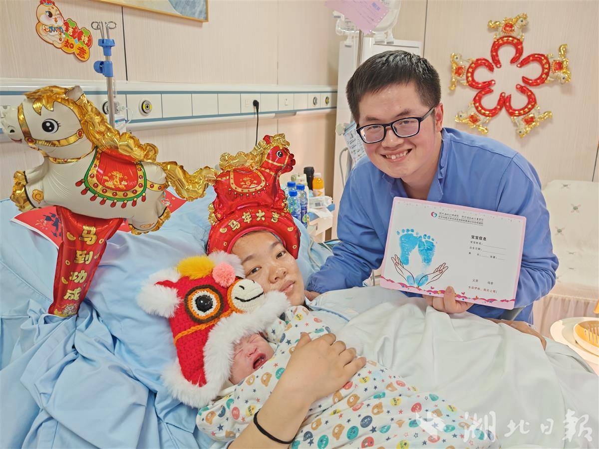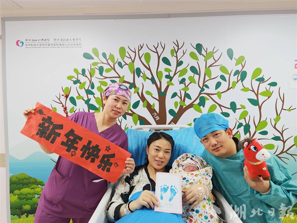 湖北省妇幼保健院街道口院区首个新春宝宝降生。(湖北日报全媒记者 龙华 通讯员 周绪鸿 摄)